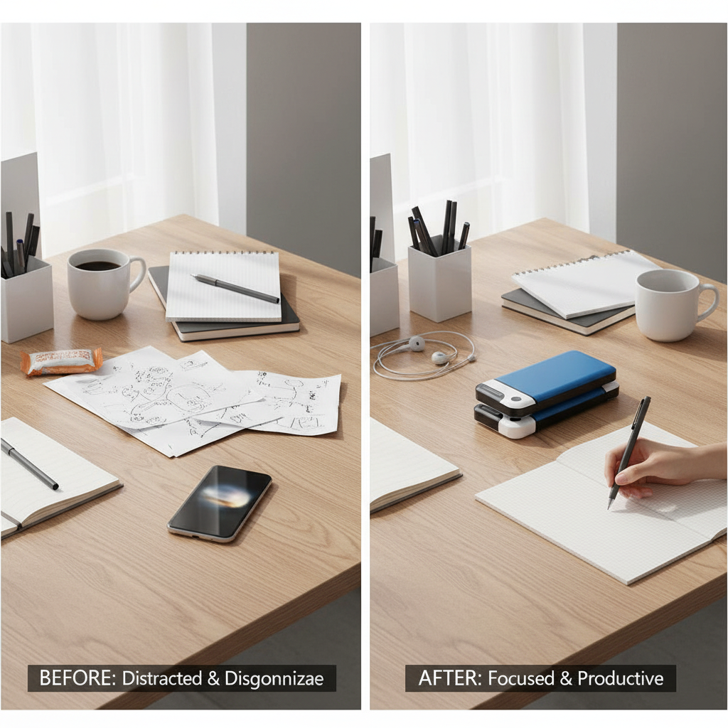 One box. One timer. Infinite focus. Finally break free from endless scrolling and achieve what you've been putting off for months.